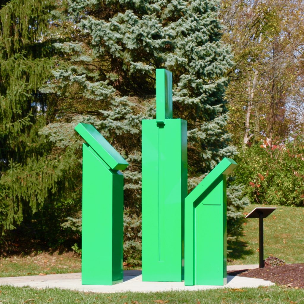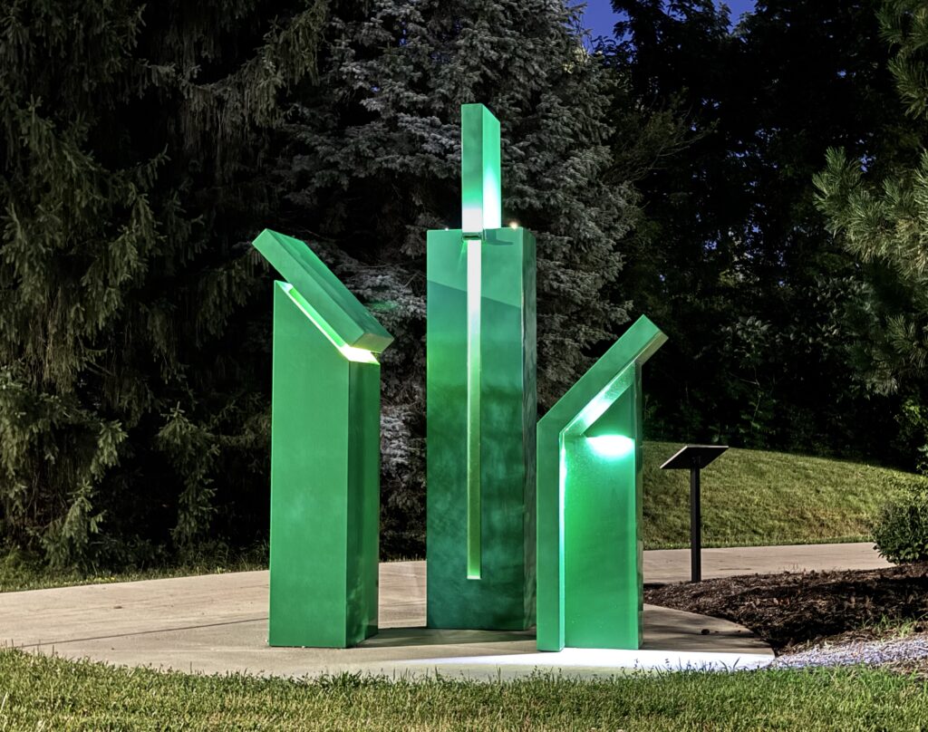 This sculpture was commissioned by the college to celebrate the 50th anniversary of the Fort Wayne campus. 8′ x 5′ x 11′ Powder Coated Aluminum. Completed in 2019